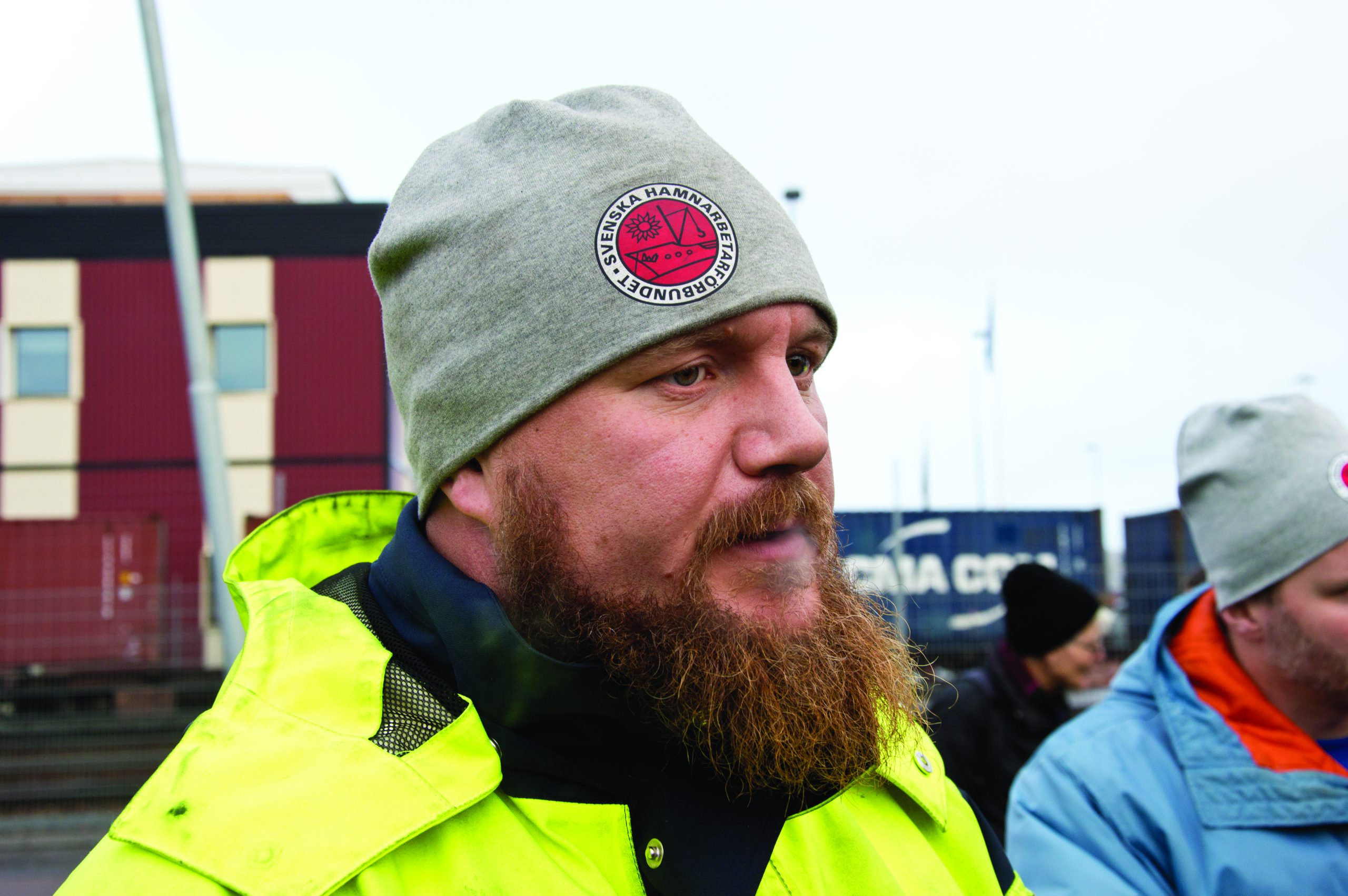 – Det är inte bara det att vi har över hundra skyddsombud som inte får verka, vi får inte ens vara med som sakkunniga på våra egna arbetsområden, säger Erik Helgeson från Hamnarbetarförbundets styrelse till Proletären.