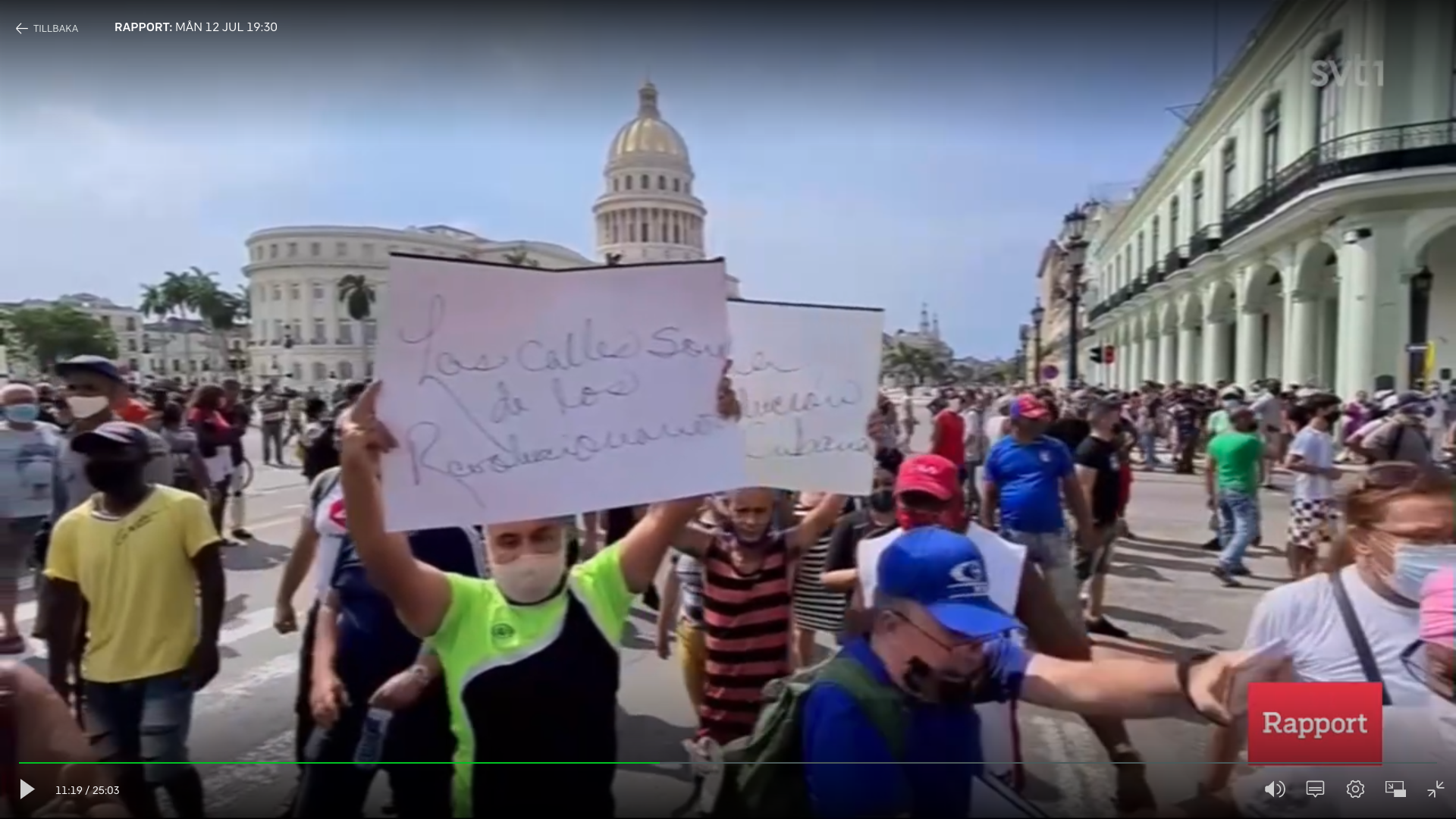 Läsare har hört av sig till Proletären om SVT Rapports inslag i måndags kl 19.30. I ett längre inslag om ”Stora protester på Kuba – missnöje med ekonomi och pandemi” visades i bakgrunden en stor demonstration – på en stöddemonstration till den socialistiska regeringen. Samma bild har används av bland annat The Guardian, New York Times och Sydsvenskan men även ”vänster”-tidningen Dagens ETC, med direkt felaktig eller missvisande bildtext.