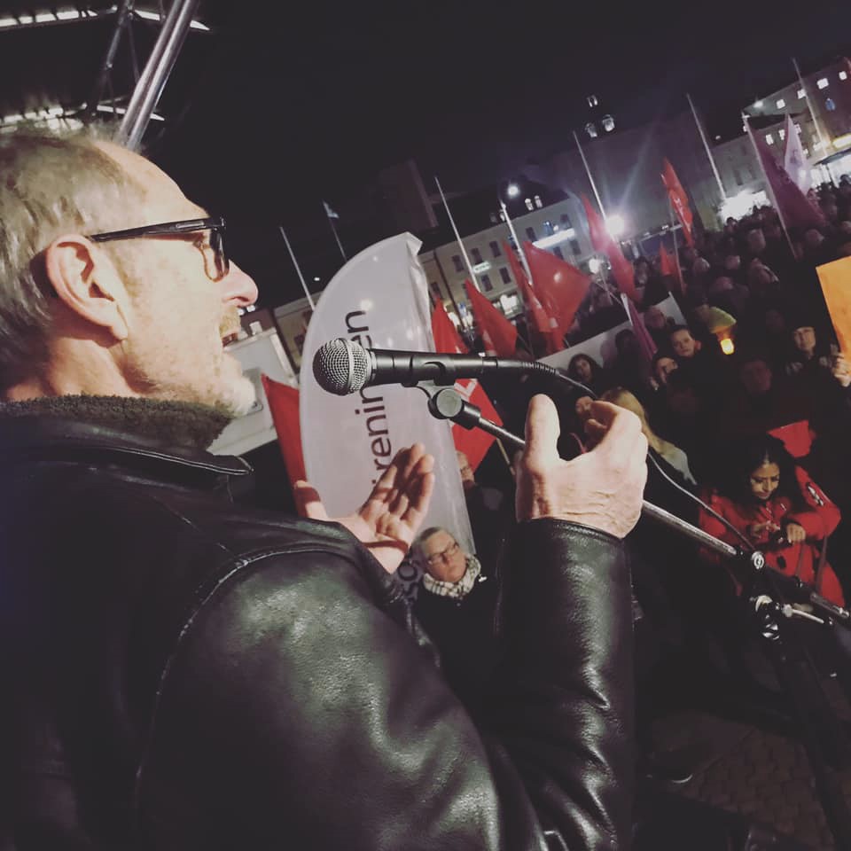 Bakom protesterna låg bland annat Kommunupproret, Hyresgästföreningen och Vänsterpartiet. Från scenen uppmanade bland annat Ulf Nilsson, ordförande för Kommunistiska Partiet, till fortsatt motstånd mot den borgerliga politik som trasar sönder staden.