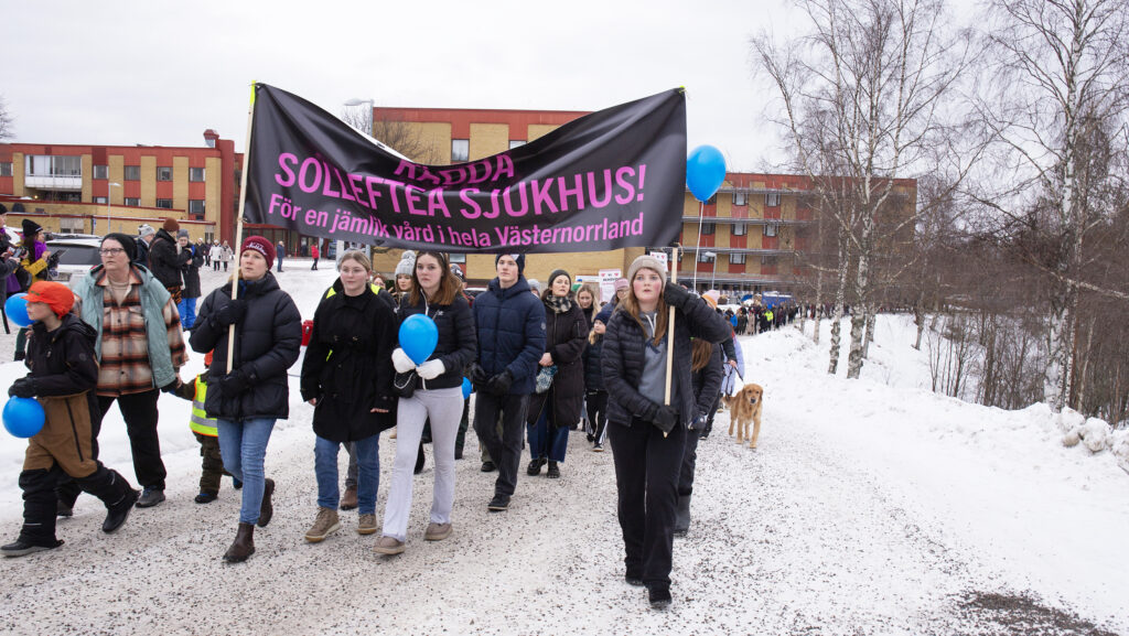 Självklart protesterar den drabbade befolkningen mot utvecklingen. I Sollefteå tågade i vintras 3.600 personer mot nedläggningsplanerna och ST-läkaren Kajsa Dovstad samlade in 16.500 namnunderskrifter mot nedskärningarna.