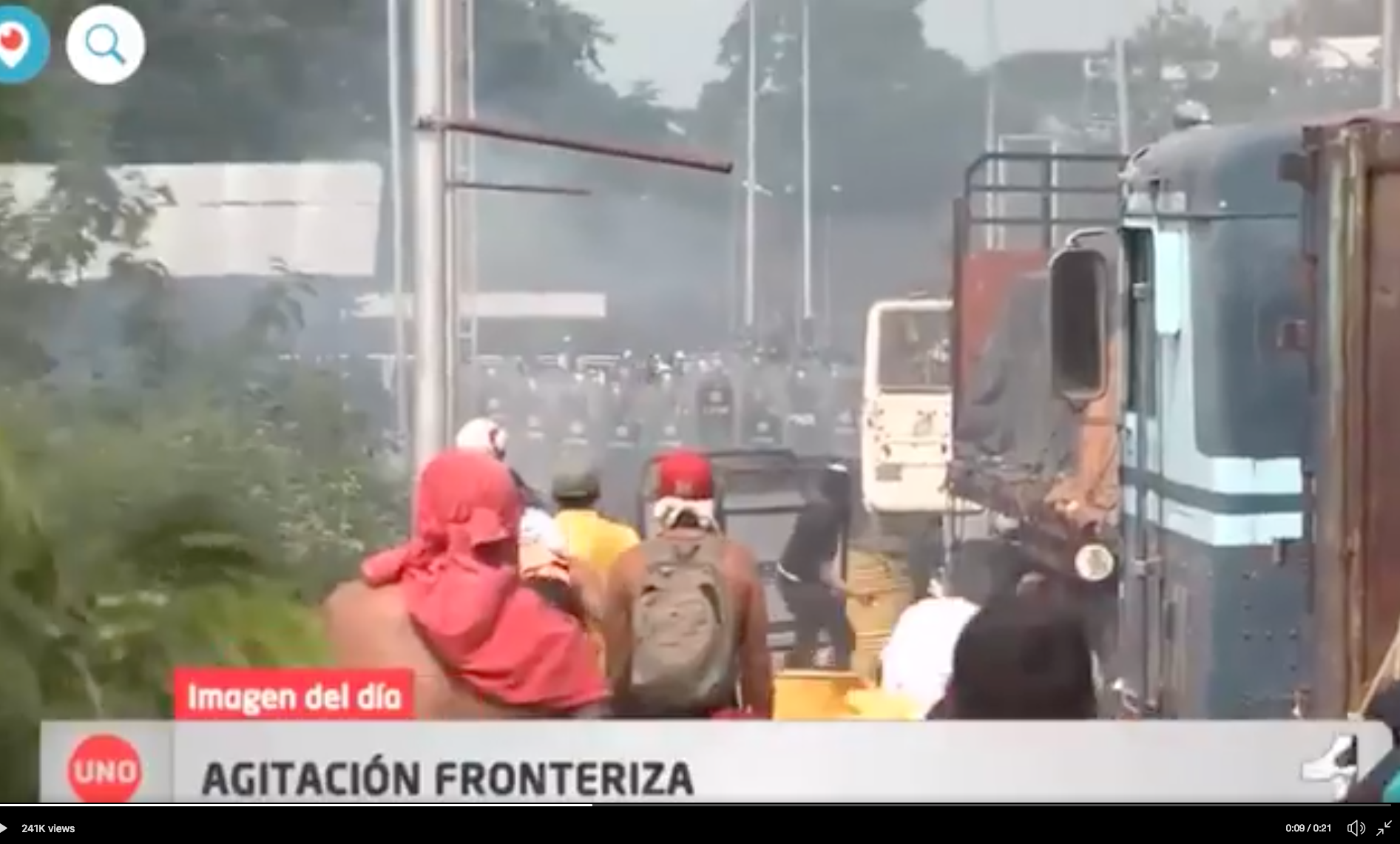 På lördagen brändes två lastbilar med USA:s ovälkomna ”bistånd”, på bron mellan den colombianska gränsstaden Cúcuta, där USA laddat upp med sin ökända USAID-”hjälp”, och gränsen mot Venezuela. Att det var maskerade provokatörer som satte fyr på lastbilarna – på den colombianska sidan gränsen – framgick knappast i SVT:s Aktuellt, som istället okommenterat visade bilder på Guaidó där han skyller de brända lastbilarna på Maduro.