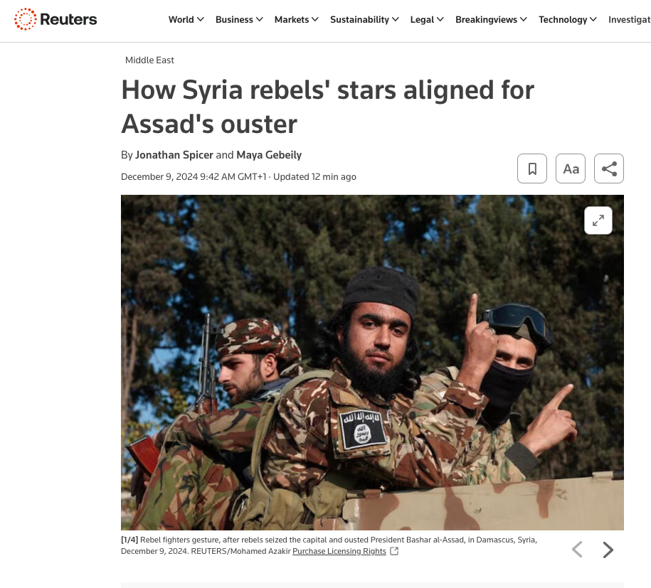 Delar av den syriska armén kan ha köpts över redan på förhand när offensiven var på gång, och ordern om att inte försvara Homs och Damaskus ska ha kommit direkt från Assads regering. Inte omöjligt efter att Ryssland kommunicerat till Assad att man beslutat sig för att inte längre lägga de militära resurser som krävs på att försvara Syrien lika hårt som man gjorde för tio år sedan.