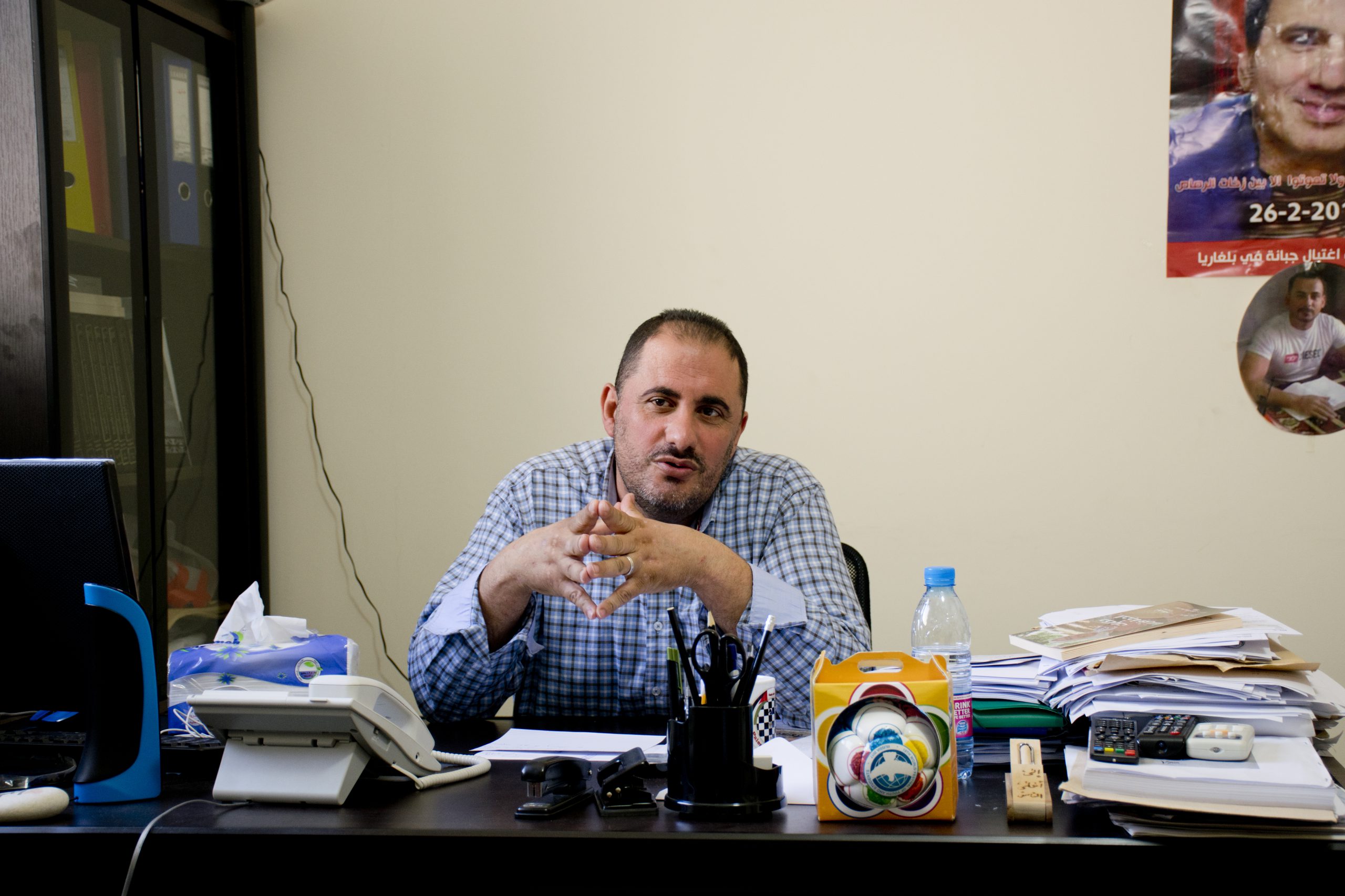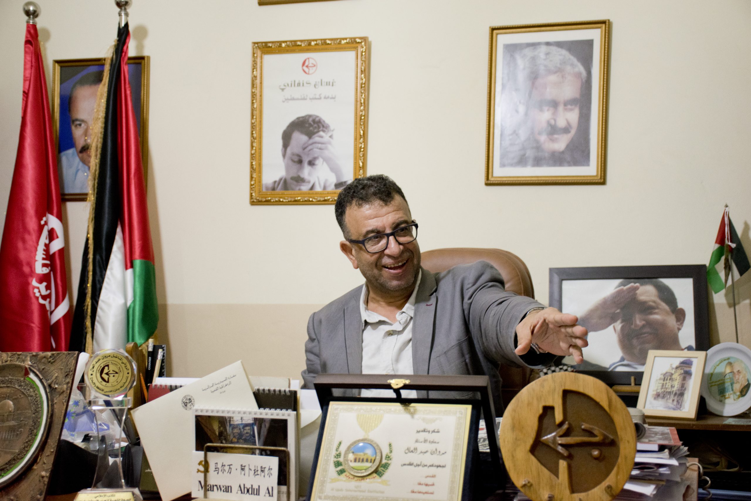 I samma hus som Marwan Abdel-Al har Haytham Abdo, ordförande i PFLP:s ungdomsförbund PYO, sitt kontor.