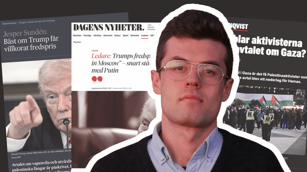 “Donald Trump måste hyllas för avtalet […] Mycket kan fortfarande gå fel – kommer Hamas till exempel verkligen att gå med på att avväpnas?”, förklarade Expressens Patrik Kronqvist. “Om avtalet håller borde Donald Trump vara en självklar kandidat till Nobels fredspris”, fortsatte han och undrade varför så få “Palestinaaktivister firar”.