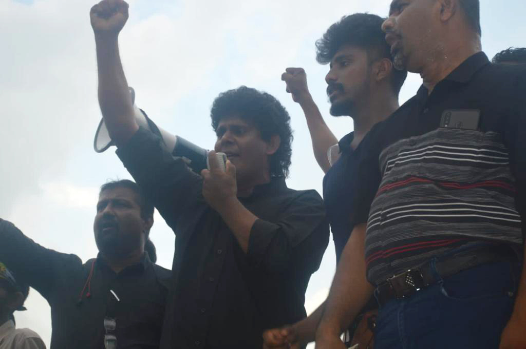 – De försöker hela tiden skada oss, de försöker stoppa den folkliga rörelsen och revolten i landet, men de lyckades inte, säger Wasantha Samarasinghe.