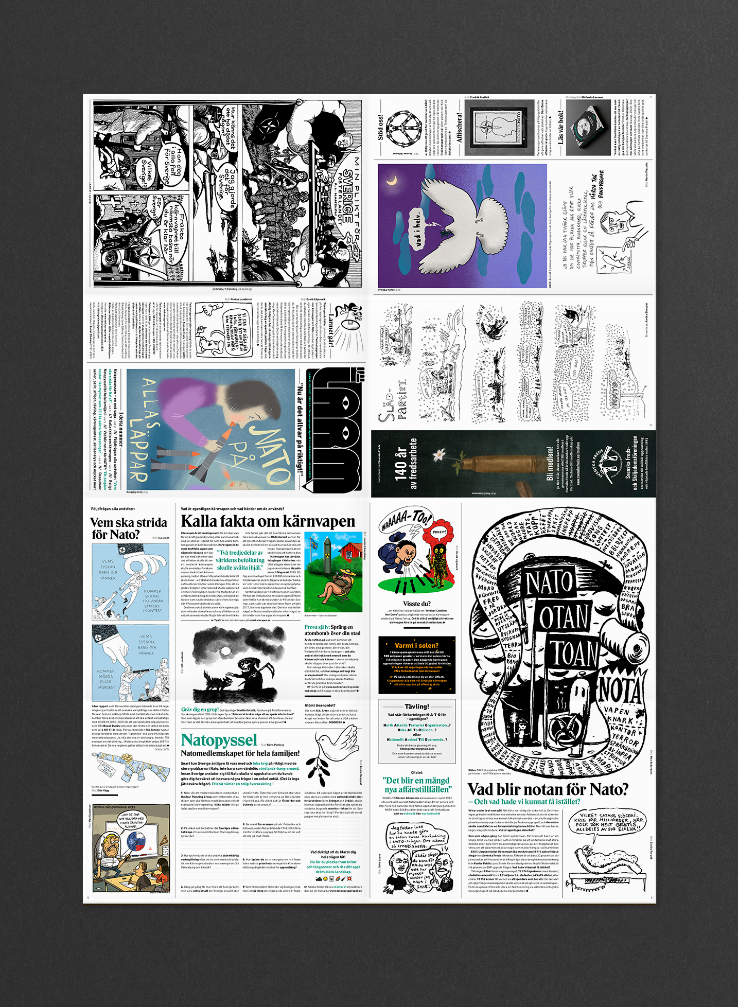som vi. Vi kommer med starka argument i både text- och bildform, som vi hoppas att många ska hörsamma. Förutom satiren innehåller varje nummer fakta om Nato och kärnvapen som har utelämnats i stora delar av media, säger Karin Zaric Sunvisson.