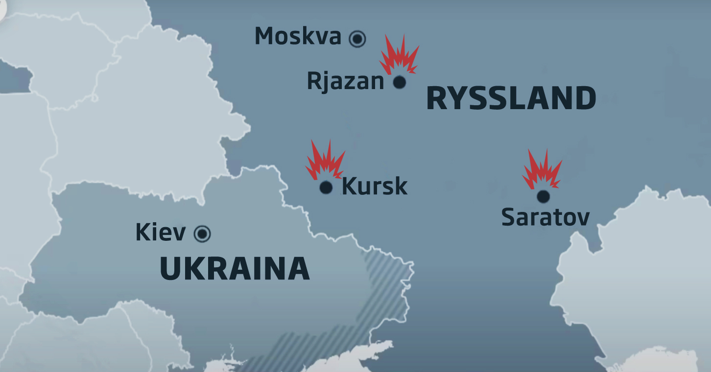 På måndagen orsakade drönare explosioner på baserna i Saratov och Rjazan, och på tisdagen attackerades flygbasen i Kursk. Kursk ligger knappt tio mil öster om den ukrainska gränsen, men Saratov ligger hela 60 mil in i Ryssland och Rjazan mindre än 20 mil från Moskva.