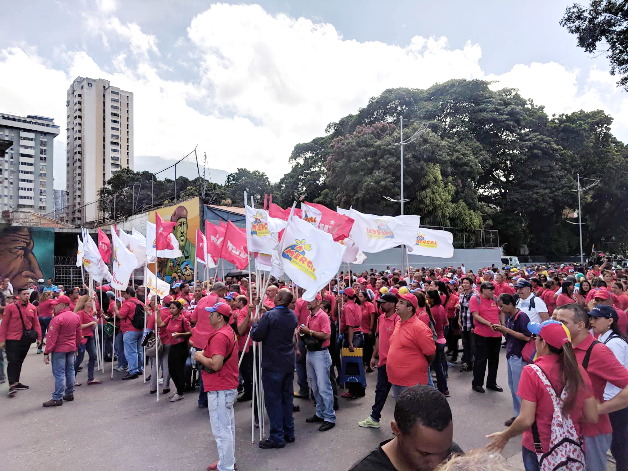 I Caracas hamnade han mitt i en bondemarsch, med chavistiska bönder som demonstrerade för fortsatta sociala reformer.
