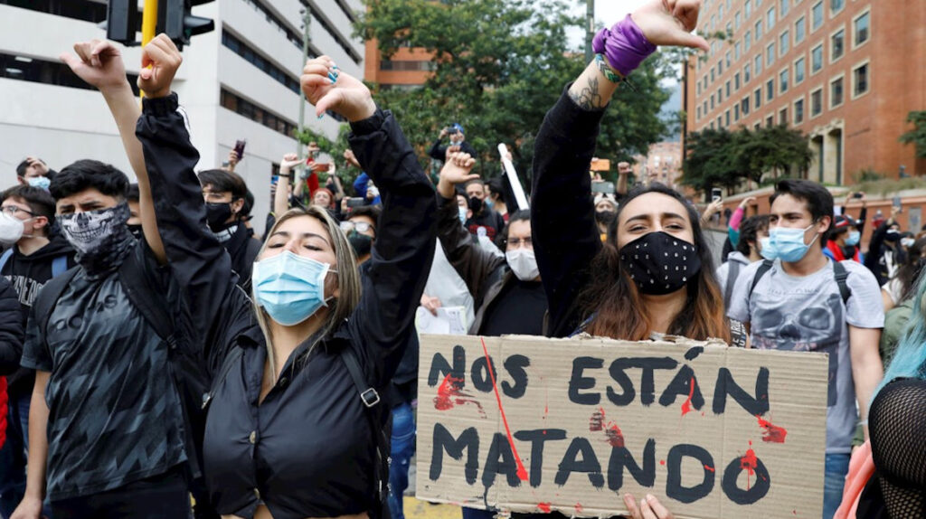 Colombias polis skjuter för att döda när folket protesterar