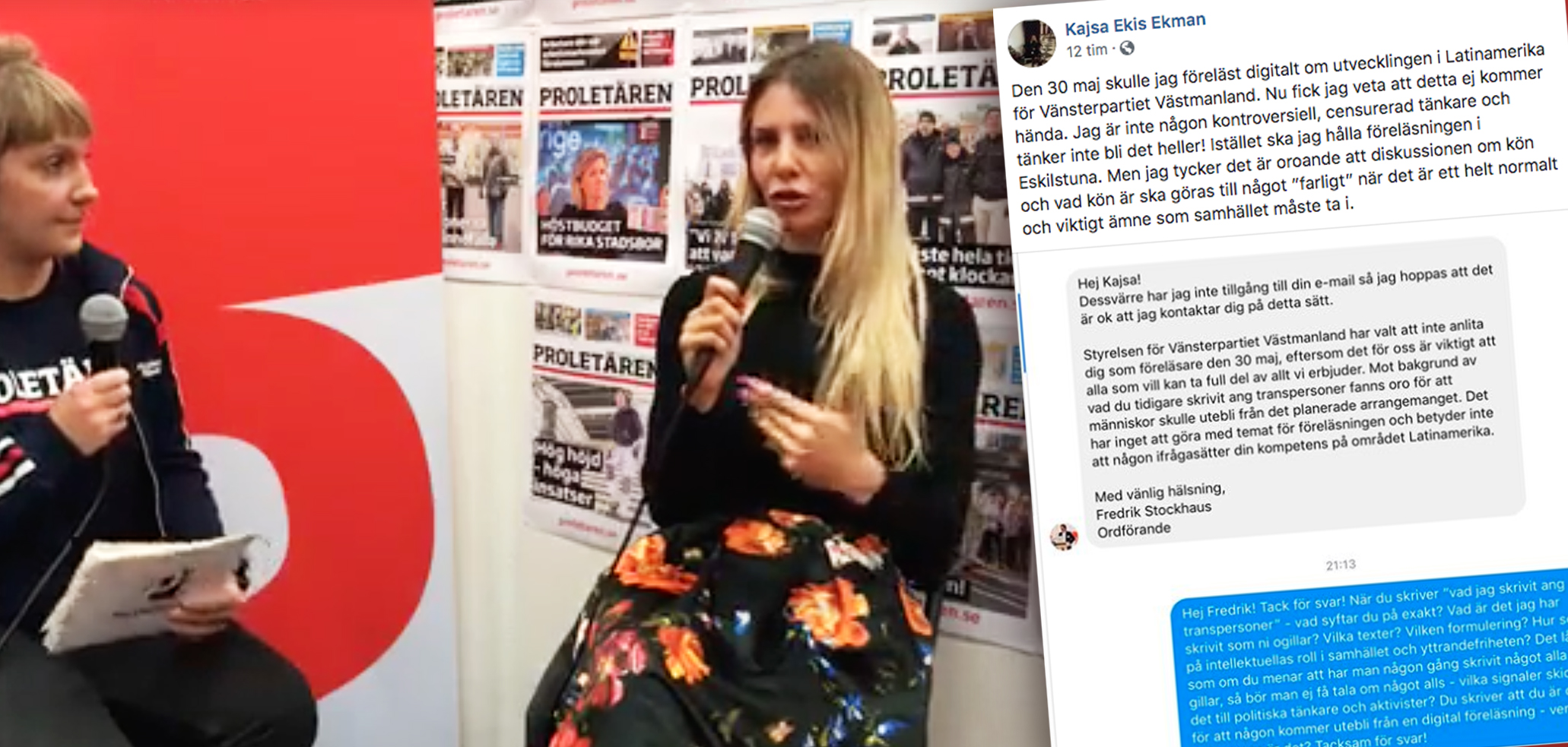 V stoppar föreläsning med Kajsa Ekis Ekman – ”fanns oro”